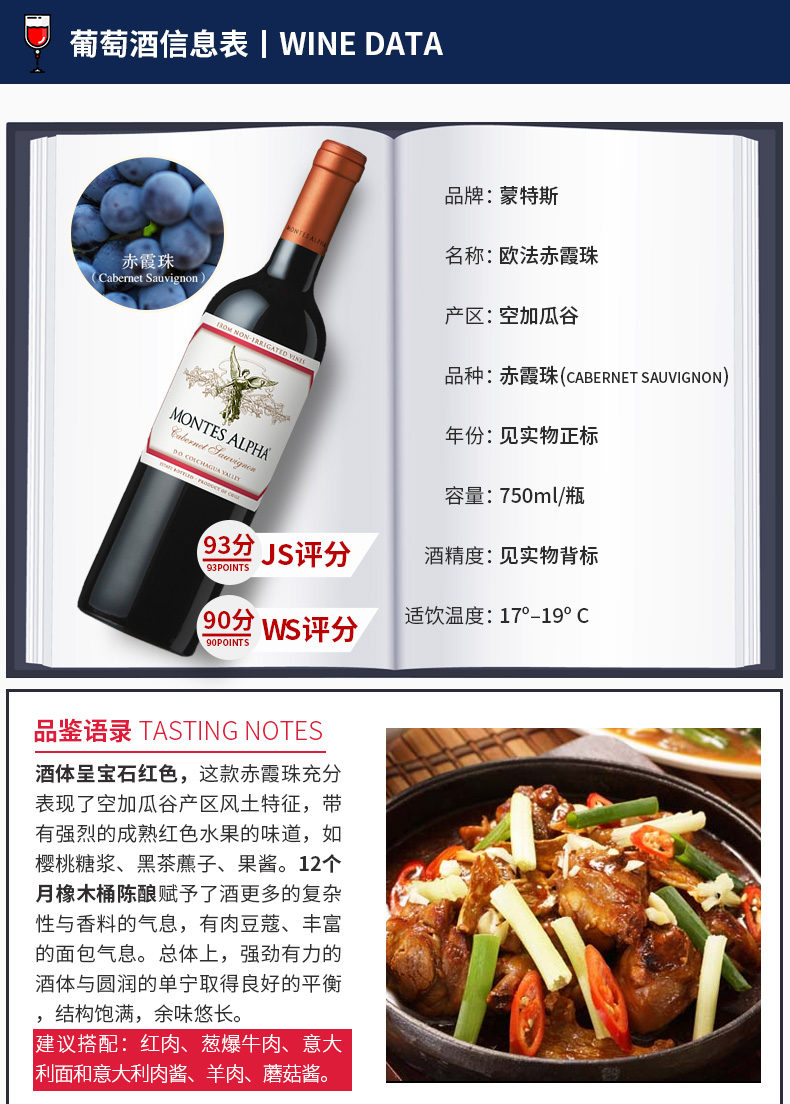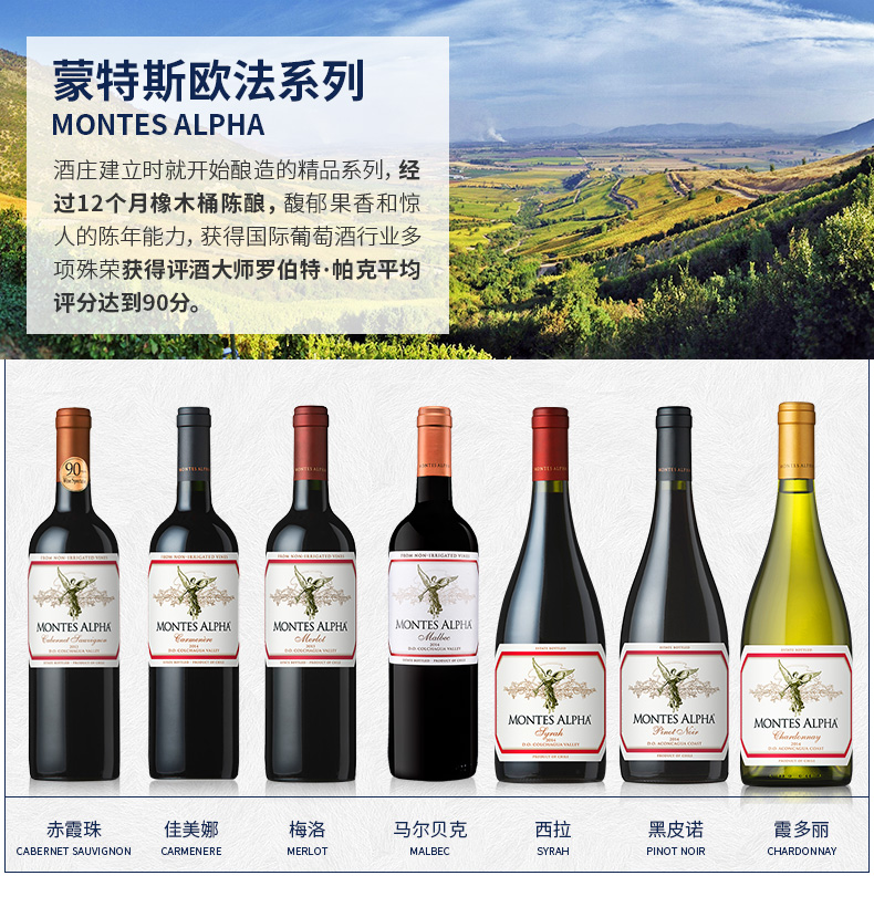 智利红酒蒙特斯欧法赤霞珠干红葡萄酒Montes Alpha原装原瓶进口