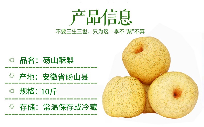 正宗砀山酥梨现摘新鲜水果脆甜多汁薄皮当季黄皮青皮10斤