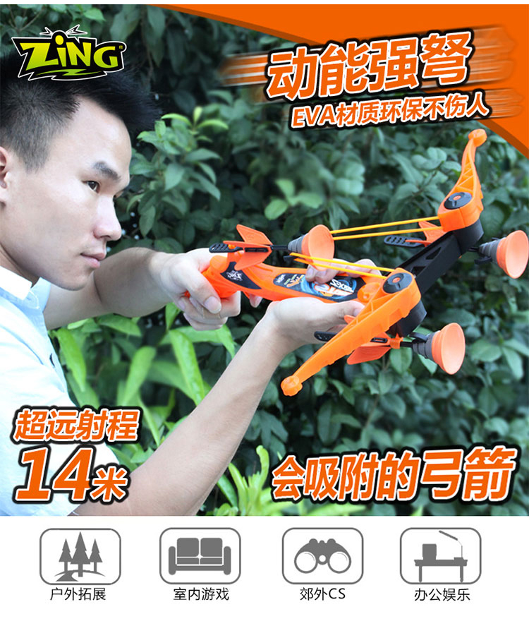 ZING正品儿童弓箭弹力儿童弹弓玩具弩吸盘弓箭安全儿童亲子运动