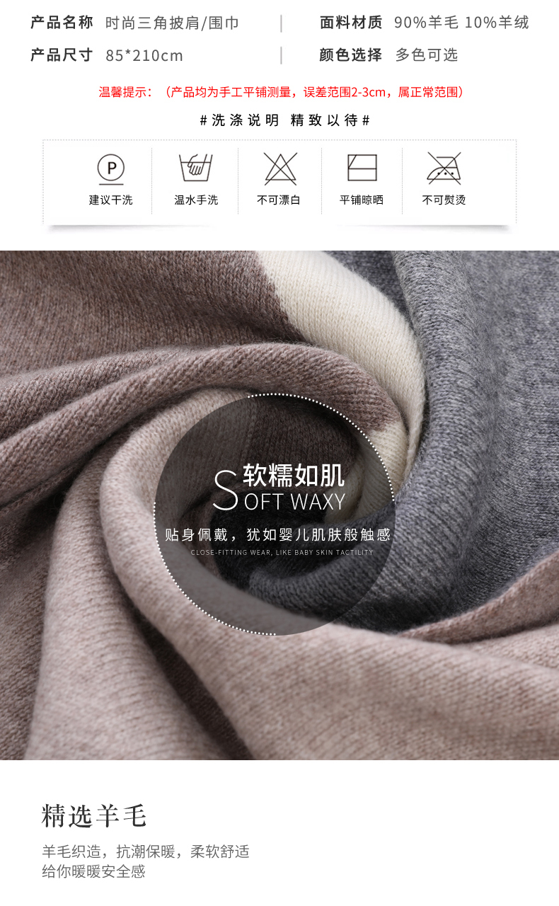 三角巾装饰围巾秋冬女百搭羊毛披肩两用针织羊绒女士保暖围巾围脖