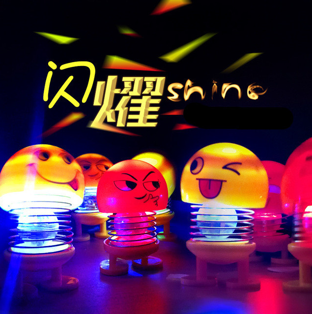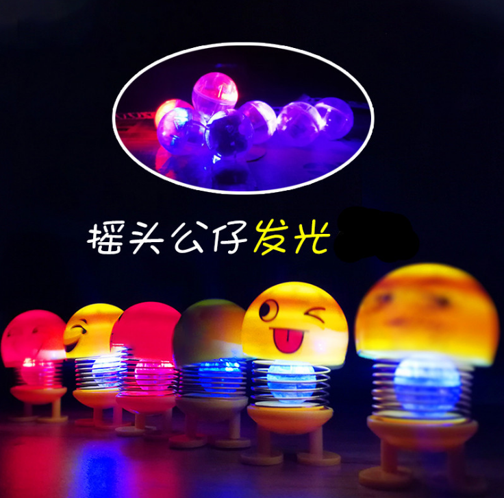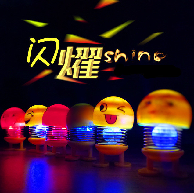 抖音同款车载网红摇头公仔带灯光汽车摆件弹簧搞笑表情包发光